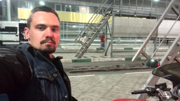 Находясь еще в Питере, я решил, что обязательно по дороге заеду на озеро Тамбукан под Пятигорском. Славится оно своими целебными грязями. Где-то около трех часов дня я уже плавал в озере. Приветливые местные жители, узнав, что я приехал из Питера, накормили меня пирогами и арбузом. Довольный, сытый и оздоровившийся, я отправился к границе. Во Владикавказе меня ждала последняя заправка дешевым отечественным бензом за рубли. Как положено, заправил полный бак и поплелся к Верхнему Ларсу – так называется пограничный пункт. Из Владикавказа выезжал уже когда совсем стемнело. Практически сразу за Владикавказом начинаются горы. Дорога становится извилистой, быстро ехать не получается. Так как ехал в потемках – видел только силуэты верхушек гор по бокам. Зрелище и ощущение захватывающее, скажу я вам. Фотками и словами этого не передать. Через полчаса я уже был на нашей границе. Машин было совсем мало, поэтому я не стал щемиться без очереди, уже никуда не спешил. В соседнем ряду проходили пункт ребята из Мск. Несмотря на то, что они приехали на 20 минут раньше, освободились позже меня, так как их заставили заполнять какой-то опросник. Мне же попался в будке чел, очень интересующийся мотоциклами. Так что после пятиминутного диалога «за жизнь» меня пропустили, и даже не досматривали. Грузинские пограничники пропустили меня еще быстрее. Проверили доки, поставили штамп о пересечении, и помахали ручкой. Я рассчитывал поменять деньги на границе, но, именно в тот момент в обменнике никого не было. Ждал полчаса, так и не дождался. Местные подсказали, что ближайший обменник есть в десятке километров от границы, в селе Степанцминда. Добравшись до Степанцминды, я поменял тыщу рублей по спекулятивному курсу и купил симку Биллайна по спекулятивной цене). Вообще, обычный курс рубля к лари – 25 к 1. Т.е. за 100 рублей дают 4 лари. Тут же мне пришлось покупать лари чуть ли не по 29 рублей. С симкой такая же хрень. В офисах ты ее покупаешь по номиналу, а тут пришлось заплатить 4 лари только за болванку.