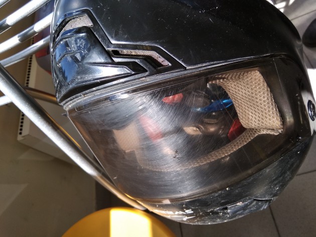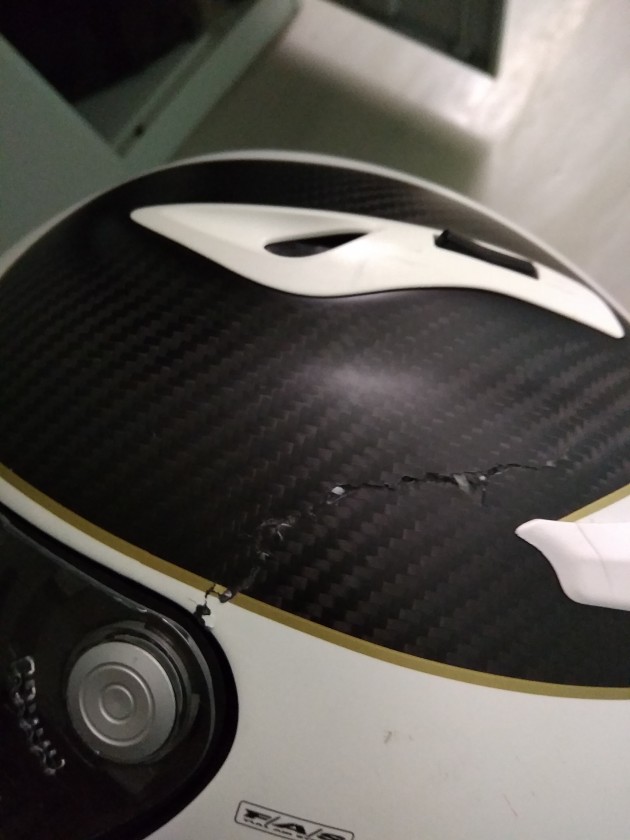 Народ, есть карбоновый шлем совсем новый, но треснувший в результате падения на него мотоцикла. Вроде сильного уменьшения жесткости не произошло, когда сжимаешь его двумя руками - не сплющивается. Что скажете? Можно использовать по назначению? Колпак легкий, удобный, сделан качественно. Жалко выбрасывать. Да и зае..ся я покупать "одноразовые" визоры на свой SWEEP/Marushin за 2500. Реально, на один минидальняк только хватает - затираются в ноль! Для сравнения, на дешманском IXS визор уже три года ходит без проблем. Но он тяжелый и неудобный.