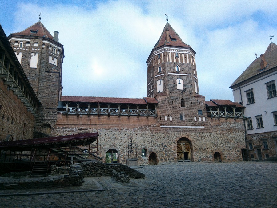 Каждый раз приезжать в новое место, всякий раз ехать другой дорогой, избегать сборищ туристов – таково моё кредо в путешествиях, но в этот раз я от него отступил. Во время прошлогодней поездки по Белоруссии я приехал к Мирскому замку просто чтобы поставить галочку – я здесь был: короткая остановка, традиционное фото мотоцикла на фоне достопримечательности, и дальше в путь. Но что-то зацепило меня в этом месте, постоянно напоминало мне о нём, и вот я паркую мотоцикл на дворе усадьбы с потрясающим видом на замок. А завтра с утра мы с друзьями проведём в этом замке почти четыре часа; будет и экскурсия, будет и музей, всё как у настоящих туристов. А ещё я, как мальчишка, буду лазить и вверх и вниз по узким лестницам замковых башен, восторгаясь открывающимися через бойницы видами. Восхитительное место.