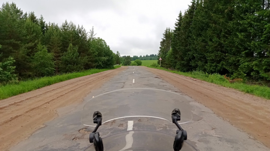 День близится к концу, до дома чуть больше двух часов, но неожиданно начинается гребёнка. Адская гребёнка! В чём дело? Прошлой осень же здесь ездил, не было такого! 60-40-20… только на этой скорости подвеска начинает справляться и мотоцикл перестаёт трещать. Нет, ехать будто черепаха невозможно. 50-60-70… треск не проходит. 70-80-90… мотоцикл становится неуправляемым. Сбрасываю до 20, прижимаюсь к краю, начинает накатывать истерика… Сколько!? Сколько ещё будет продолжаться этот ад? Выдыхаю. Знаю, что дорога не постоянна и нужно просто ехать вперёд. Успокаиваюсь.