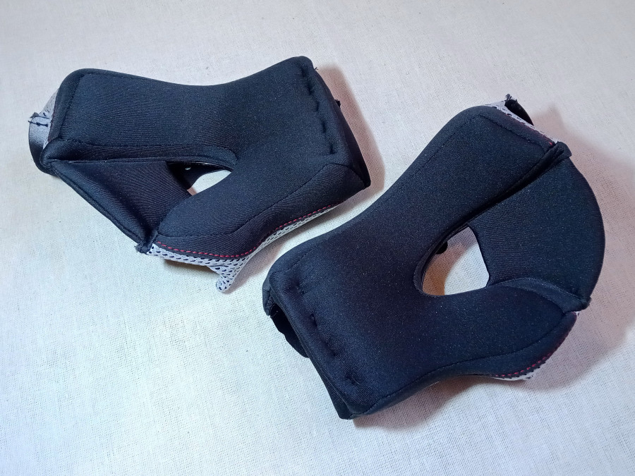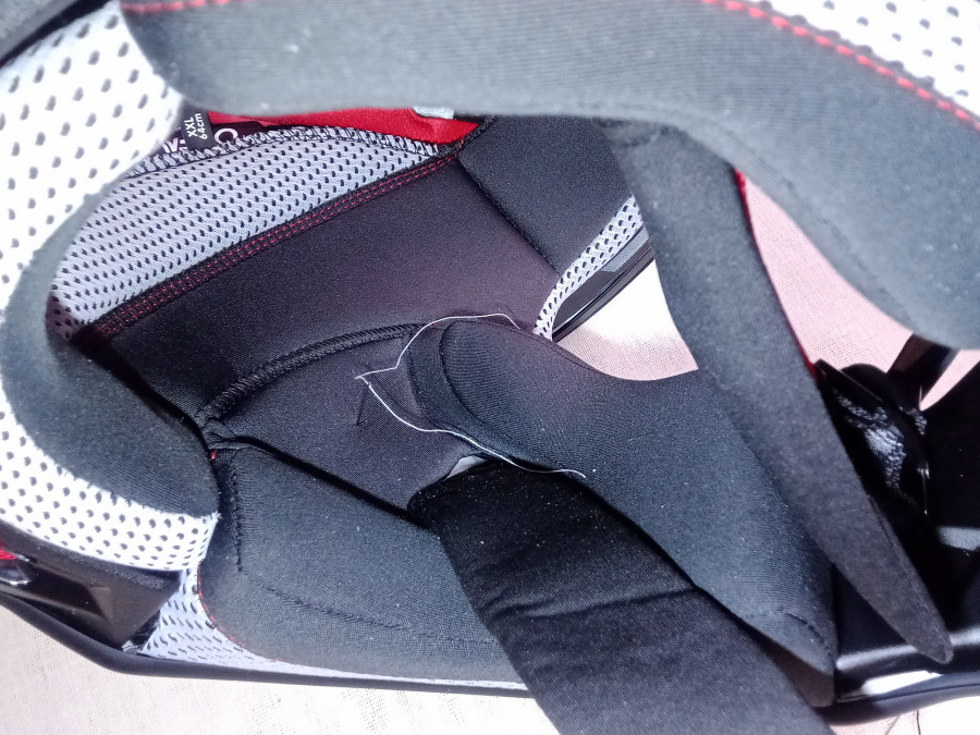 Несколькими стежками ниток стягиваю подушки наполнителя в том месте, где они давят на щёки. Может это только у меня с челюстью что-то не так, но без такой доработки в шлемах мне некомфортно.