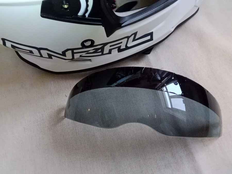 На внутренний солнцезащитный визор наклеиваю сверху полосу тонировочной плёнки. Это очень помогает, когда приходится ехать прямо на солнце, висящее над самым горизонтом. Вот и всё. Шлем готов. Весь процесс занял 2 часа.