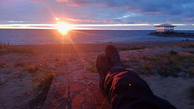 Прихватив с собой банку тушенки и фляжку, выйти на берег, и вдохнуть полной грудью солёный запах ветра, что веет с моря. Не замечая никого вокруг, улечься на песок и на секунду убедить себя, что ты свободен, и жизнь лишь началась. Хотя прекрасно понимаешь, что всё это не так и вспять её уже не повернуть. Торопиться сюда, и успеть. Успеть увидеть, как огромный солнца шар, пройдя сквозь мир скрывается в волнах…