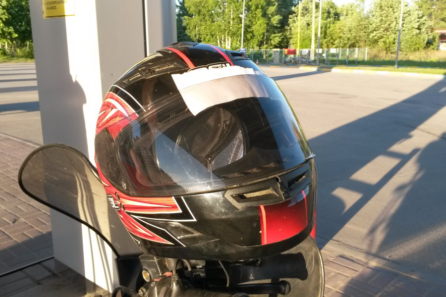 В далёком уже 2018 году, возвращаясь из поездки по Белоруссии, довелось мне впервые в моей мотожизни довольно долго ехать по прямому шоссе навстречу заходящему солнцу. В машине – хорошо, опустил солнцезащитный козырёк, и перестало слепить. Со шлемом так не получается. И даже если визор на нём затемнённый или встроенные тёмные очки есть – это лишь немного снижает напряжение глаз, но практически не улучшает видимость. Прямо хоть руку вперёд вытягивай и ей от солнца закрывайся.
