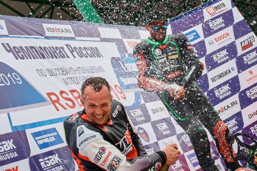 Новый сезон RSBK 2019 привнес тонну настоящей интриги. В королевском классе Superbike развернулось красивое сражение между топовыми пилотами страны. В этом году пилотам предстояла борьба в двух видах гонки – спринтерской и изнуряюще длинной гонки, которая является колоссальным испытанием для спортсменов. Так, действующий чемпион RSBK Владимир Леонов после напряженной борьбы с участником чемпионата мира по мотогонкам в классе Moto3 Макаром Юрченко занял второе место на подиуме, не уступив бронзовому призеру Сергею Крапухину. Макар Юрченко по итогу этапа - безоговорочный лидер соревнований.