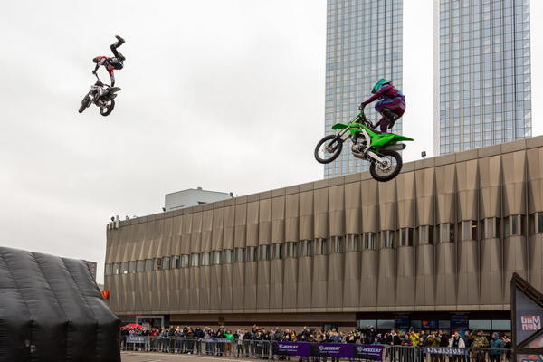 Пасмурное небо прояснилось к выходным — и на уличной площадке взревели моторы «Шоу Безумцев». Их яркое мотофристайл-шоу собрало вокруг себя восторженных зрителей, некоторые из которых специально приезжали из других городов, чтобы увидеть всё своими глазами.