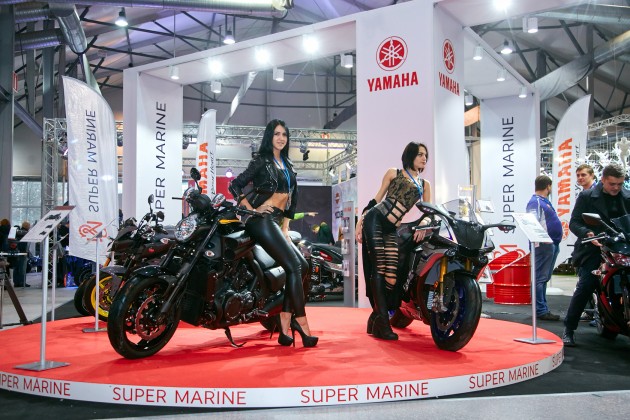 Абсолютным рекордсменом по количеству новых мотоциклов стал стенд компании Yamaha, представившей новый нейкид MT-10, малокубатурный YZF-R3 и суперспорт YZF-R1M.