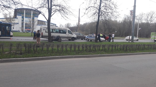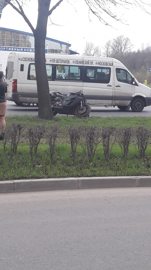 На Ветеранов у дома 61 мужик на Красной Мазде резко затормозил,в него влетел мужик на маршрутке, а парни на байке растерялись и въехали в заднюю часть маршрутки разбив заднее стекло, мотик в хлам, все живы