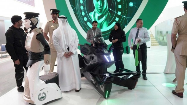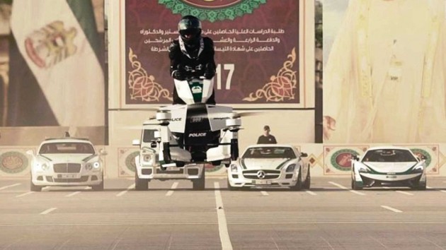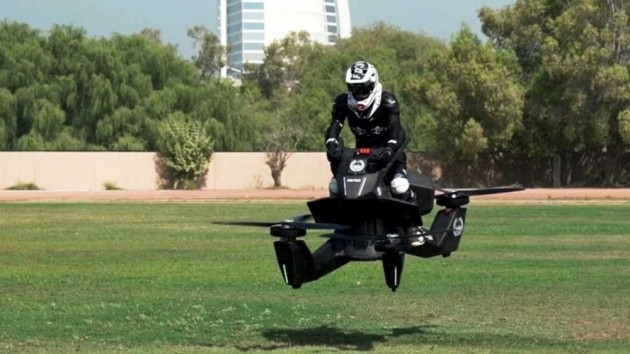 Полиция Дубаи получила первые Hoverbike. Серийная версия Hoverbike S3 преимущественно сделана из углеволокна, поэтому весит всего 115 кг. Летающий мотоцикл развивает максимальную скорость 90 км/ч и может находиться в воздухе не более 30 минут. Большим плюсом является тот факт, что транспортное средство может подниматься на высоту 5 метров и парить над трафиком, а также парковаться на стандартных местах. Для управления не нужны права пилота. Цена: 150 000 долларов.