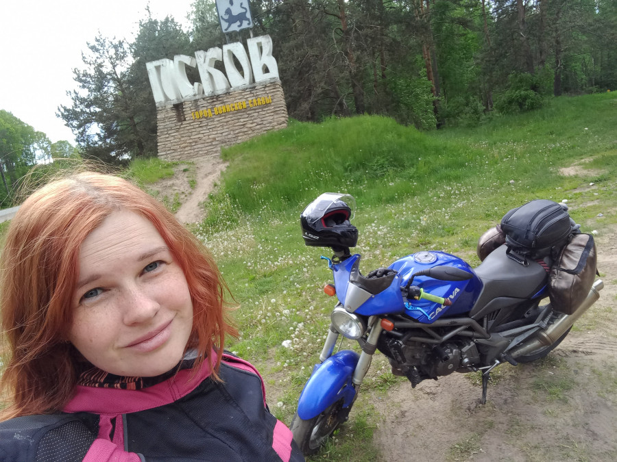 Я проснулась утром в первый день лета с уверенностью что должна сегодня остаться дома, хотя жилье было забронировано. Доверяя интуиции я выехала утром следующего дня. День тёплый солнечный, еду я совсем не спеша, ускоряясь только на обгонах. Ветер свистит в шлеме, а задница быстро немеет с непривычки. Моя цель на сегодня доехать до Пскова.