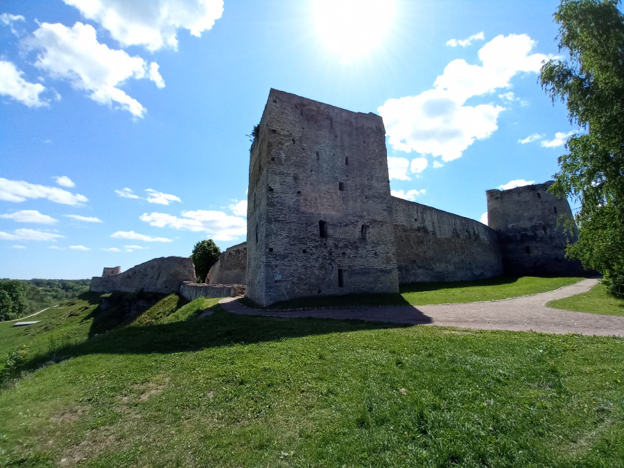 Псков поразил меня: с одной стороны средневековые руины крепости, с другой стороны "граффити" на этих стенах и промышленные строения прямо в районе окольного города - ну как так? Но всё же я не ожидала увидеть такого масштаба крепости, я знала только о псковском кремле, потому с огромным удовольствием прошлась по благоустроенным паркам, глядя на останки былой русской мощи - руины этой цитадели. Вдоль стены сохранились башни, в некоторые можно заглянуть.