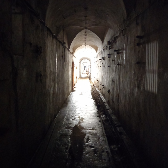Форт по будням работает с 13 до 21. Вход 150 руб + 150 руб отдельно за проход к подземным тоннелям.