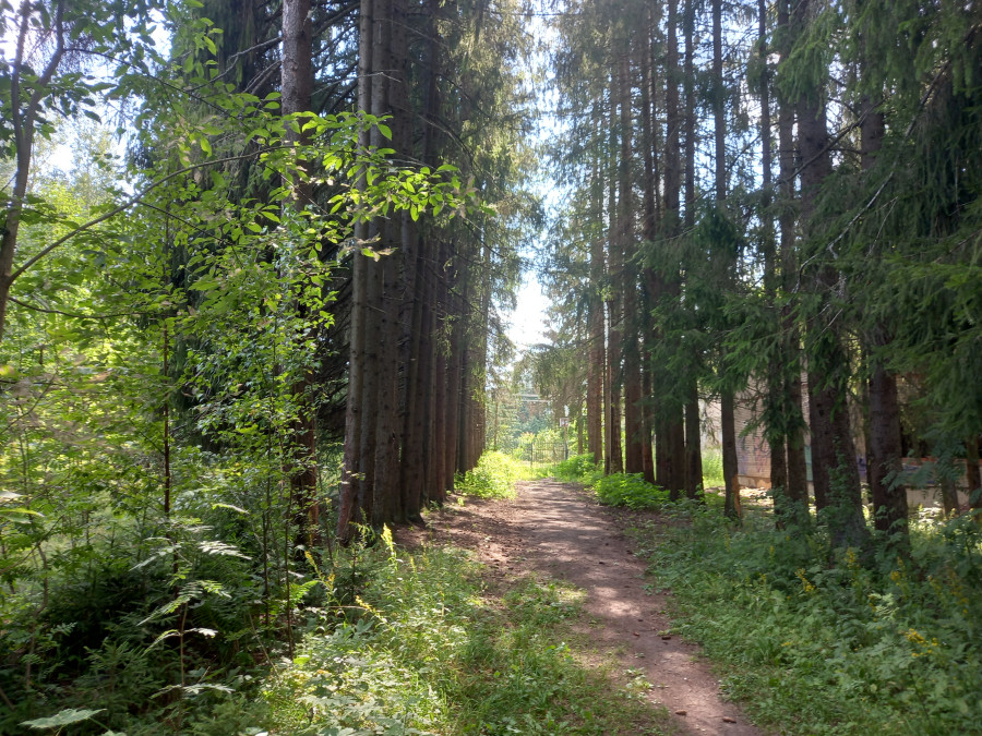 Погода выдалась очень жаркая, тем приятнее гулять в теннистом сосновом лесу, изучать корпуса лагеря.