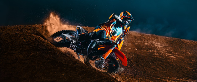 KTM 300 SX подходит тем, кто стремится к новым достижениям и хочет быть лидером. Мотоцикл с высокопроизводительным 2-тактным двигателем, вес которого составляет всего 24 кг, демонстрирует максимальную мощность в 57 лошадиных сил, что дает преимущество кроссмену.