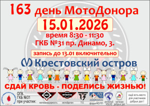 МотоДоноры объявляют дату 157 Дня МотоДонора – 26 июня 2025 года, четверг, место проведения – ОПК ГКБ №31, Крестовский остров, пр.Динамо, 3, с 8:30 до 11:30...