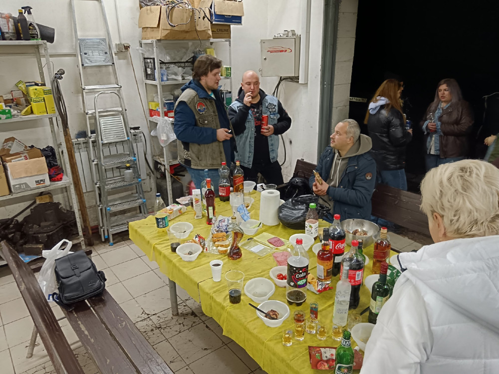 Далее, через некоторое количество часов все собрались за общим столом. Тосты, шутки, прибаутки, в общем душевная обстановка.