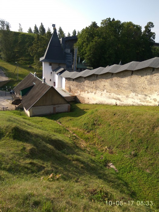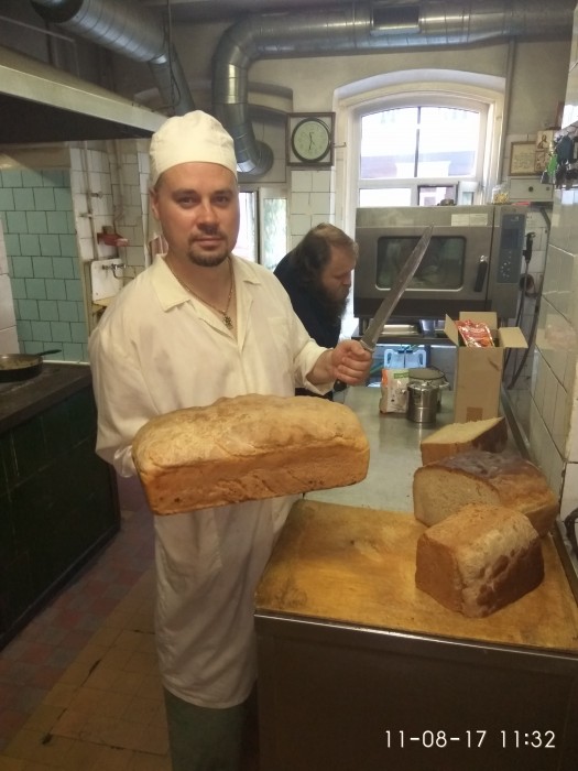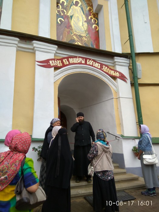 Молебен проходил в Успенском храме, освещенном в 1473 г. Обстановка камерная и возвышенная – никакой болтовни или смеха, освещение только натуральными свечами. Послушание в первый день у меня началось в 13.00. Кухня работает в 2 смены и в этот день я был во 2 смене. Повар Антоний, послушник 32 лет, который живет в монастыре уже 7 месяцев. Меня назначили его помощником. Я хотел задать ему много вопросов, но после нескольких попыток понял, что либо болтовня здесь совсем не приветствуется, либо Антоний не хочет общаться. Обязанности не сложные, блюда которые мы готовили тоже простые. Могу дать несколько рецептов от лишнего веса)). Суп с пшенкой, состав: лук и морковь пассированные в растительном масле, пшенка, соль вода. На второе – макароны, состав: макароны, соль вода. Мяса в монастыре не употребляют. В непостные дни иногда добавляют рыбные консервы, примерно 5-7 банок на 150 литров супа или постного плова. Всю еду готовят только на огне как и 100 и 200 и 500 лет назад. Поджигают печь только от лампады под иконой. Перед началом и процессе обязательны молитвы. Первый день так и прошел в трудах на кухне, далее я пошел в свою келью, упал на кровать и выключился. Во второй день послушание начиналось в 6 утра, и надо было успеть выспаться. Зато в 13.00 часов я был уже свободен. Пообедав на кухне свежим монастырским творогом, сметаной, черной смородиной, душистым хлебом, монастырским квасом я отправился изучать достопримечательности монастыря. Интересного много: белки и абсолютно ручные косули бегают по территории как в лесу. Колодец со святой водой, 5 храмов постройки 15-18 веков с чудотворными иконами, каждый абсолютно неповторим, например Успенский находится большей частью в пещерах, святая горка – место, куда ходили молиться монахи издревле, там сохранился дуб, которому примерно 500 лет., Богом сданные (то есть созданные) пещеры: сеть проходов под землей, которые служили и жилищем и храмом первым насельникам, скрывающимся от мира, а в дальнейшем здесь хоронили и по сей день хоронят монахов. На данный момент захоронено порядка 10 000 человек. При чем гробы не закапываются под землю, а задвигают в специально выдолбленные ниши в стенах (для особо почитаемых старцев) или просто складывают горкой один на другой. Гробы в некоторых местах можно видеть и даже потрогать руками, но при этом не чувствуется никакого запаха разложения. Это считается одним из чудес Печёр. Кстати среди паломников я видел не только глубоко верующих и воцерковлённых христиан. Видел паломников казахов, которые путешествуют по святым местам России!, видел человека, который приехал в состоянии глубокого похмелья, может быть вследствие непростой жизненной ситуации и душевного состояния который за два дня пребывания ни разу не покинул кельи паломнического центра. Монастырь практически не отказывает ни кому на первые 3 дня, а вот потом очень тщательно подходит к вопросу выбора лиц, которых оставлять на дальнейшее пребывание. Например, не называю имен и примет, я познакомился на кухне с трудником, который отработал 3 дня и решил остаться здесь минимум на месяц, но ему отказали без объяснения причин. Может быть, причина в чрезмерной болтливости и веселости характера. Парень решил не сдаваться и искал жилье поблизости от монастыря, не найдя ничего, за неимением денег спал на улице и приходил днем на церковны