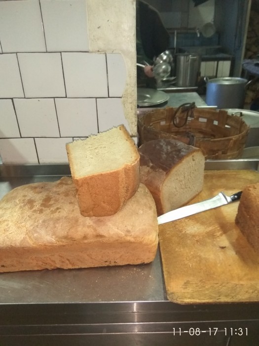 Там располагаются несколько жилых корпусов, трапезная, хоз. постройки. Порядок на территории – идеальный: кругом газоны, цветы, разбит фруктовый сад, дорожки, скамейки. Видно что за чистотой следят многочисленные трудники. Мне дали место в 3 корпусе. Мужчины и женщины живут на разных этажах, дабы не было искушения вести праздные беседы) В жилом помещении от 3 до 10 кроватей. Когда я заселялся, заняты были только 3, и я выбрал себе ложе по своему вкусу - у окна. В бытовом смысле сложностей нет: выдают комплект чистого белья, есть мини столовая с чайником и микроволновкой, молитвенная комната, туалет, душ, помещение для глажки и сушки белья. Ключи хранятся в комнате дежурного по этажу, которая всегда открыта и ключи в свободном доступе. По этому поводу первые пару дней я немного напрягался и всегда носил паспорт и кошелек в кармане, но убедился в том, что за личные вещи, оставленные в келье (а именно так называют комнату для отдыха сами трудники) можно не переживать. Через минут десять после того как я зашел в келью меня вызвала тётенька – дежурная по этажу и отправила в корпус 1 к некоему Алексею. Алексей это послушник монастыря, который занимается вопросами заселения и распределения послушаний. После 5-ти минутной беседы он спросил, не хочу ли я потрудиться и предложил послушание на монастырской кухне. Поскольку я хотел узнать жизнь монастыря изнутри, я с радостью согласился. Тогда я помню, обрадовался, что не попросили трудиться на поле или в коровнике)) Хотя позже мои новые приятели трудники и послушники говорили мне что гораздо полезнее трудиться как раз в поле или коровнике, так как это смиряет, а на кухне много соблазнов. Приезжают потрудиться в монастырь абсолютно разные люди и на разный срок от 3 дней до 7 – 10 месяцев: я видел и общался с людьми от 19 до 60 лет. Большинство приезжает уже не в первый раз. Мотивы у всех разные: кто то имеет серьезные цели, связанные с жизнью в монастыре, кто то приезжает на выходные отдохнуть от жены), разобраться в себе, потрудиться, помолиться. Автобус в монастырь отходит в 5.40, а в 6 паломники и трудники идут либо на раннюю литургию, либо на послушание. Давно я так рано не вставал. По такому графику работают все насельники монастыря, а монахи встают и того раньше - с 4 до 5, и в этом заложен глубокий смысл. Я убедился, что к 12-13 я спокойно могу переделать множество дел, а в городской суете, когда ложишься в 1-2 и встаешь в 9.00 энергии гораздо меньшее и зачастую к 17-18 чувствуешь себя выжатым. Может быть и скорее всего выходу «на высокую энергию» способствует утренняя молитва, литургия с братией в 6 утра в храме. Сам монастырь расположен как бы в низине, расщелине между высоких холмов, поэтому сразу после входа, дорога постоянно спускается и местами довольно круто. Территория облагорожена еще лучше.