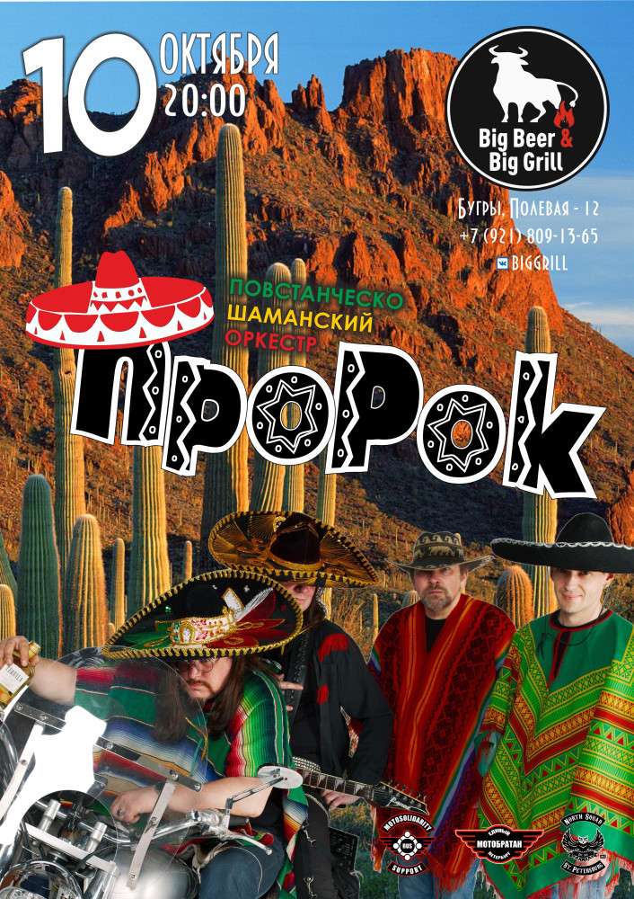 В ближайшую пятницу, 10.10.25, кактус-рокеры из П.Ш.О ПроРок) играют миниэлектрику а севере Петербурга, в Буграх, в ресторане Big Beеr & Big Grill ( Бугры, Полевая-12). Сбор в 20:00, начало выступления в 21:00. Вход свободный. Приходите греться и отжЫгать под ай-йа-йай и ой-йо-йой. :))