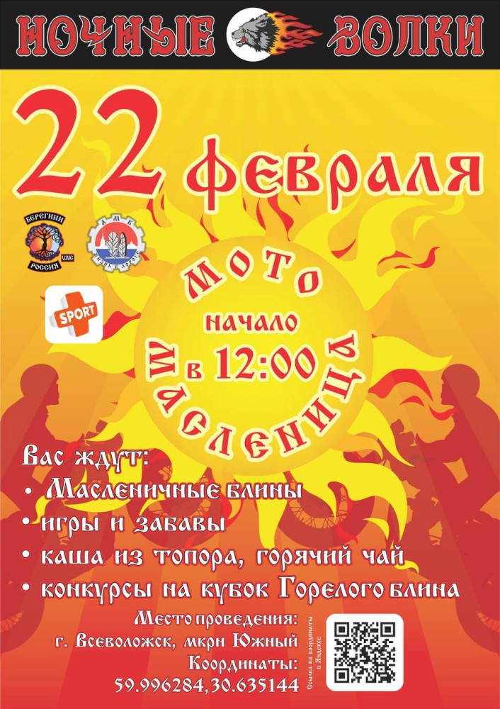 Вас ждут масленичные гулянья, игры и забавы, весёлые старты за кубок "Горелого блина", конкурсы, возможность показать удаль молодецкую, и многое другое. Для пап — гиря пудовая, для детишек — конкурсы с призами, покатушки на "урале" , игры, для мам — чаёк да блины. Ждем вас!