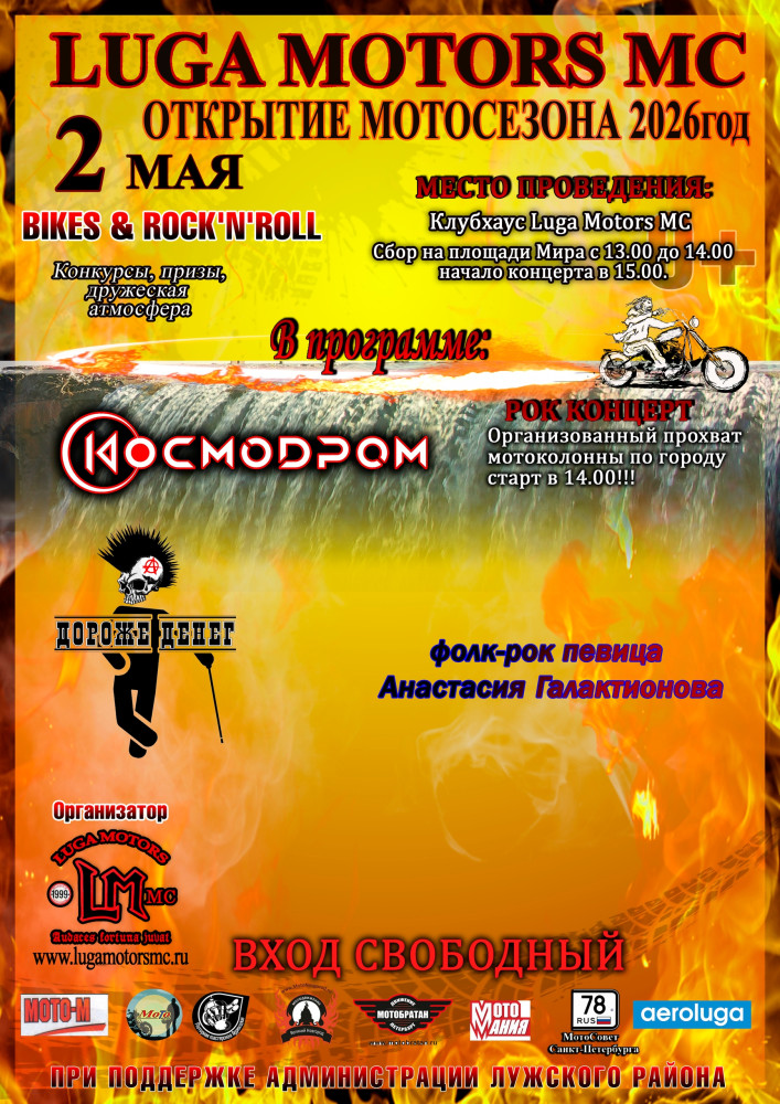 Сбор участников мотоколонны на площади Мира (у ДК) с 13.00 до 14.00. В 14.00 старт организованной мотоколонны к мемориалу "Партизанская слава" для возложения цветов. Празднование Открытия и концертная программа будет проходить у нашего клабхауса. ВХОД СВОБОДНЫЙ!