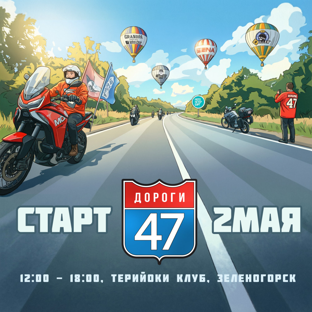 Открытие проекта «Дороги 47» состоится 2 мая прямо в пути. Вас ждут прицеп «МотоБратан» и великолепный вид на Финский залив, в прицепе — кофе/чай с печеньками, спокойный джаз и истории о дальнобойщиках, философии и практической части. Рядом — ресторан, парк и длинная прогулочная зона на набережной. Также на открытии проекта будет установлена временная пятибалльная точка, а по дороге в Зеленогорск можно зацепить ещё пару. Приглашаются мотоклубы как хранители традиций, начинающие мотоциклисты как новое поколение и, конечно, опытные, с кем мы из года в год колесим по одним дорогам.