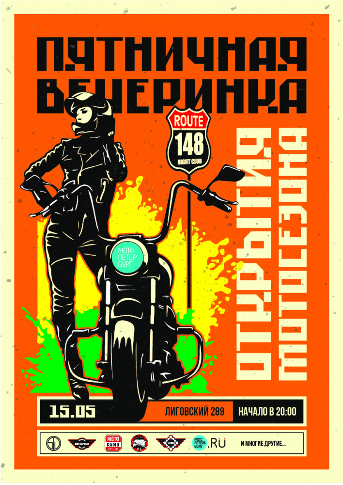 Официальная пятничная вечеринка перед городским Открытием мотосезона - Для гостей и тех кто хочет встретиться раньше. Мероприятие пройдет в легендарном, первом мото-баре Route 148 (Лиговский 289Л, ранее Night Huters) имеющим многолетнюю байкерскую историю и соотвествующий антураж (вайп:).
