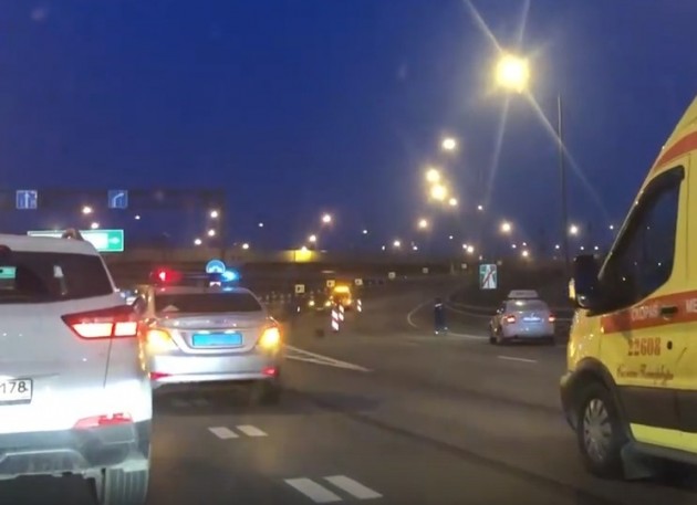 Дтп с мото примерно в 20:00 на КАД на въезде на южный участок ЗСД. Мотоциклиста увезли на вертолёте.