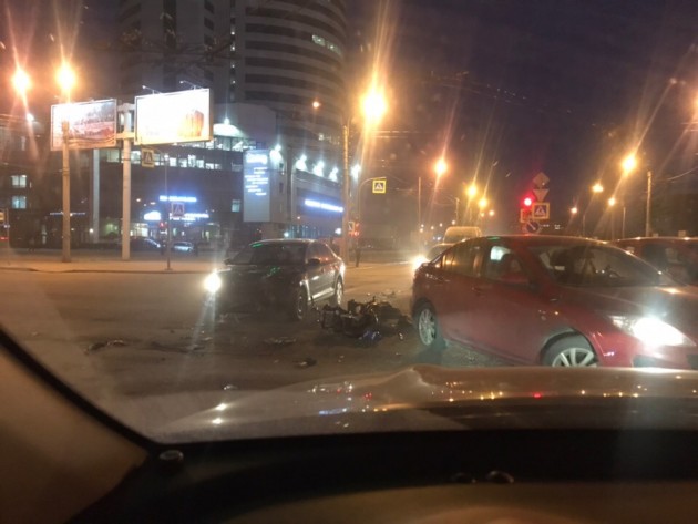 Дтп с мото на перекрестке Богатырского пр. и Гаккелевской ул.. Все живы.