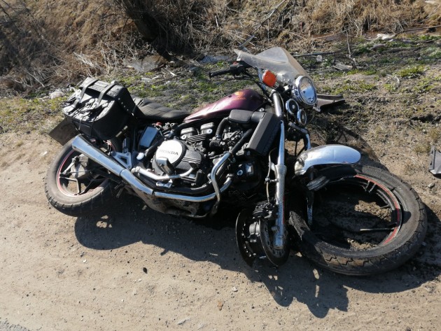Шадоу бордовый, против газели. Мотоциклиста на месте не было, место дтп даёт основания полагать, что там мясо. Кровь на асфальте есть, мотоциклиста не увидел. У газели и у мотика оторваны колеса.