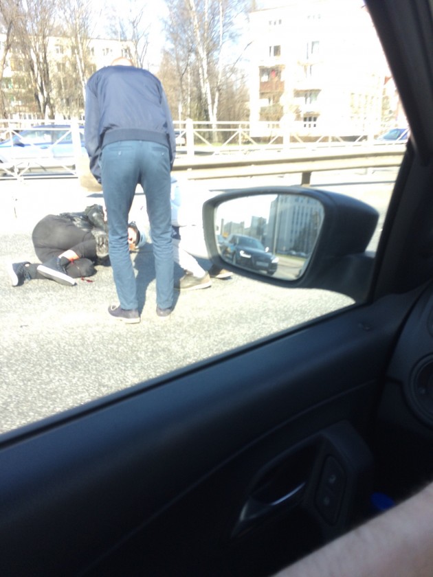 Дтп с мото на перекрёстке ул. Руставели и Пискаревского пр..