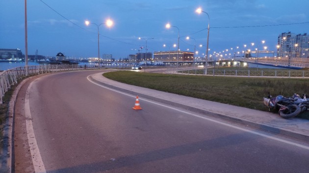 Дтп с мото на съезде с Морской набережной на ЗСД. Или не вошел в поворот или помогли. До приезда скорой и ГАИ его кто-то куда-то увёз. В ГАИ был звонок от проезжающих мимо. Хозяин мото, Алексеев Денис Геннадьевич. На месте его знакомая.