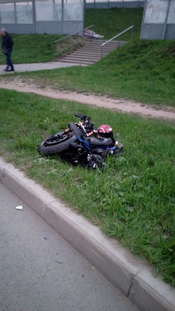 Дтп с мото примерно в 21:00 на перекрестке с Первомайской ул, Шушары. Не справился с управлением. Фамилия одного из пострадавших Даналаке, мотоцикл gsxr. Увезен в Джанелидзе, жив.Номер мото 7782 АВ47.