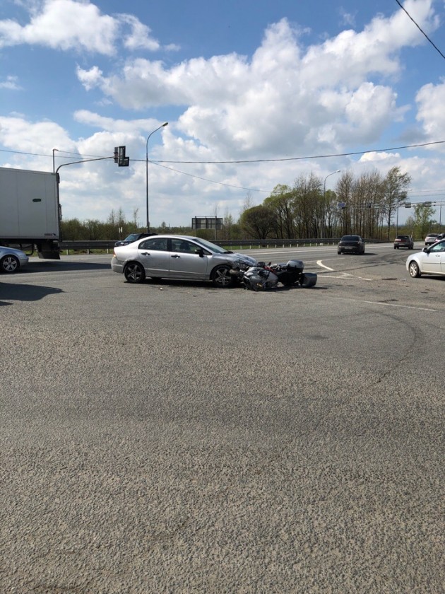 Дтп с мото на перекрестке Московского ш. и Красная дорога. Мот BMW 6375АН78. Мотоциклист увезен в Тосненскую больницу.
