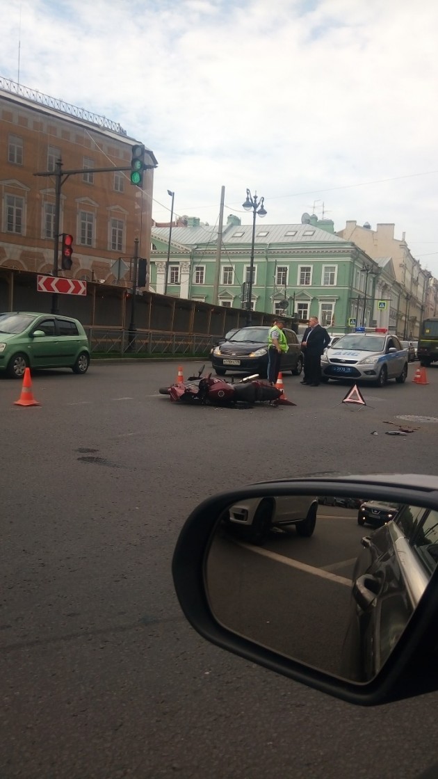 Дтп с мото на перекрестке ул. Миллионная и Мраморный пер. Мотоциклист в сознании. Просьба проконтролировать ситуацию.