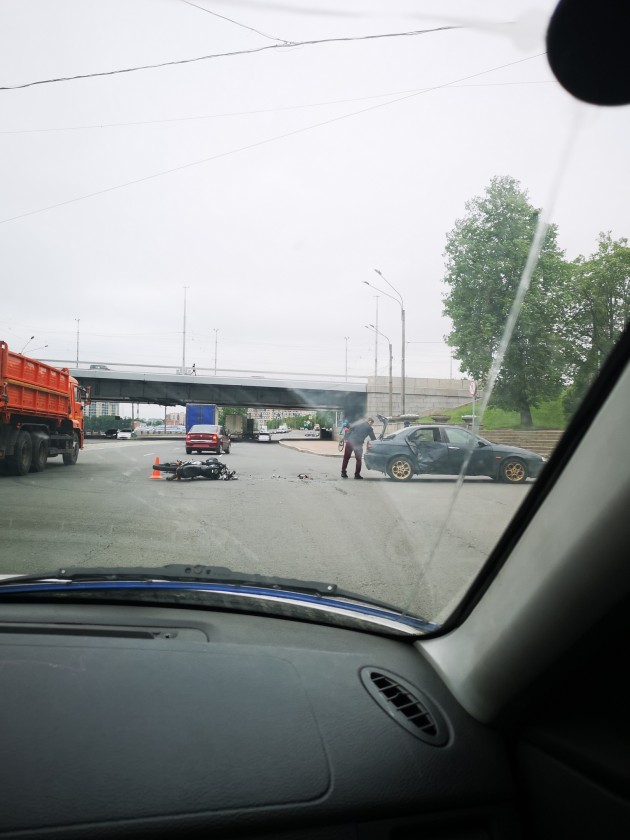 Дтп с мото на пр.Обуховской обороны. Мотициклист похоже уехал на скорой. Мот валяется.
