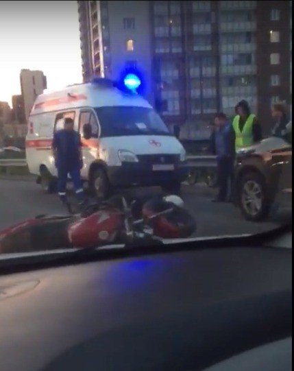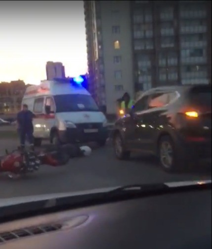 Примерно в 22:23. Мотоцикл и еще участники. Дтп с мото на Охтинской аллее, Мурино.