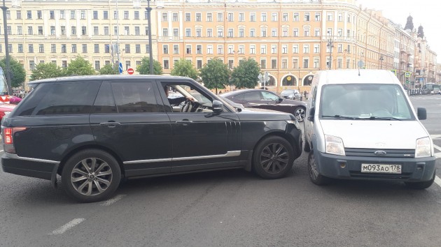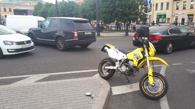 Дтп с мото примерно в 19:00 на Сенной площади. Ленд ровер поехал по карману направо и на встречку на красный, врезался в форд во втором ряду. Мотоциклист ехал в первом ряду. Оттормозился как мог и полубоком улетел в дверь. Мотоциклист жив, цел.