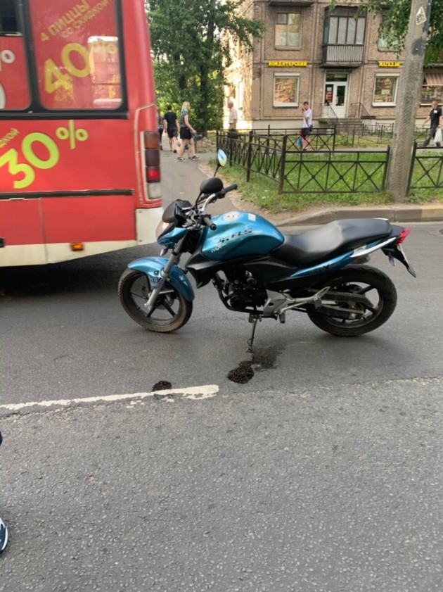 Дтп с мото на пр. Елизарова д.14. Мотоциклист поворачивал налево у дома 14, сзади него ехал автобус, за автобусом ехала Шкода и решила обогнать автобус по встречной, ехал достаточно быстро, а там мот. Водитель мотоцикла не пострадал.