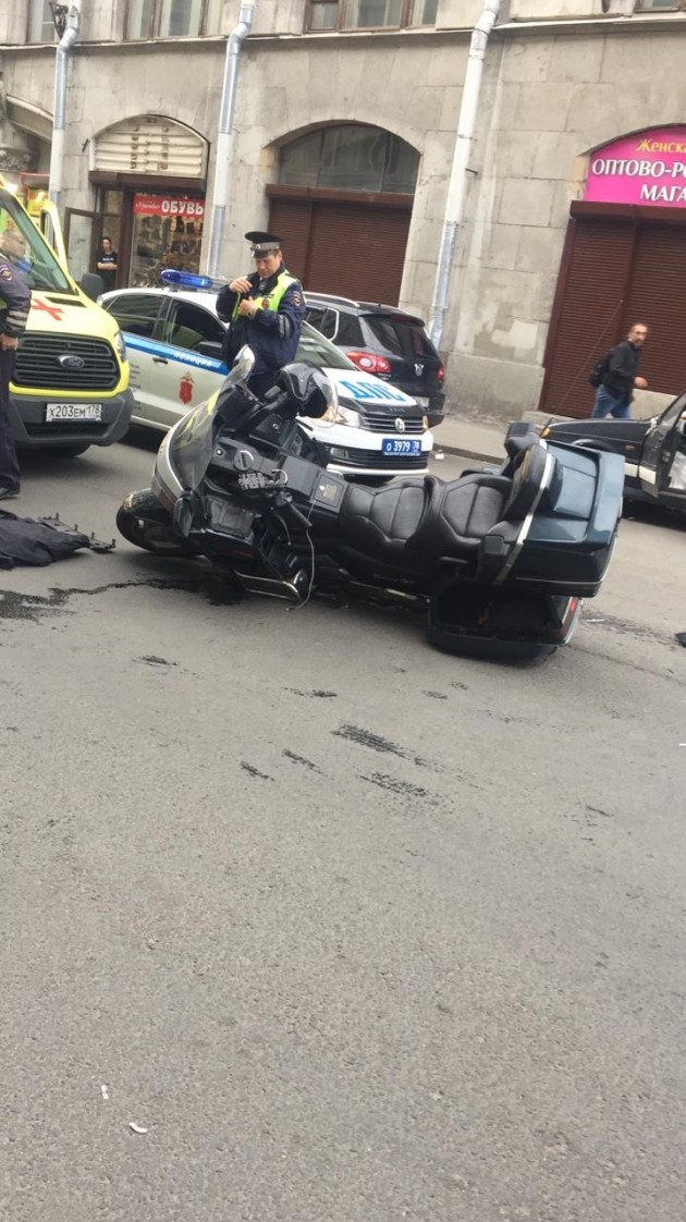 Дтп с мото в Апраксином пер., д.3. Мотоциклист жив, травма носа.
