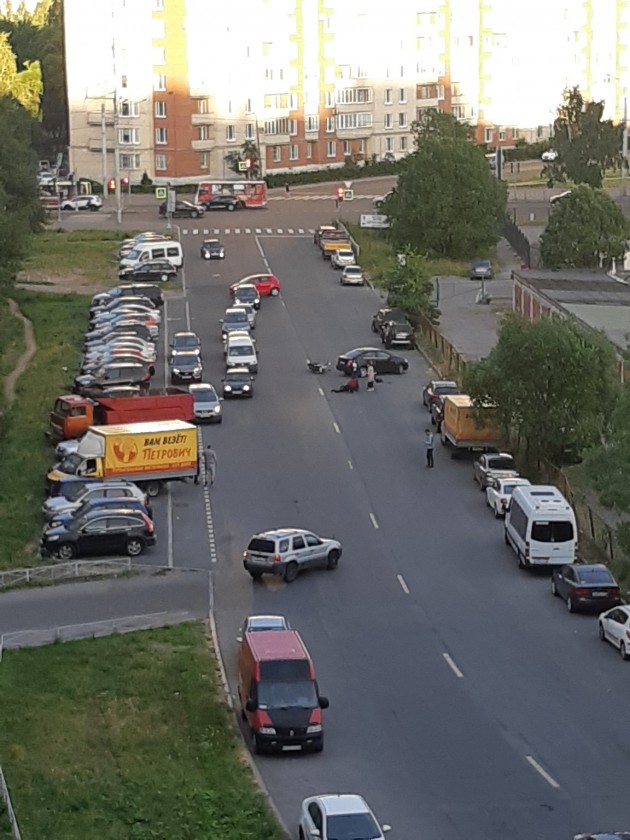 Дтп с мото на ул.Веденеева, д.4. Мотоциклист живой, двигается. Скорая на месте.