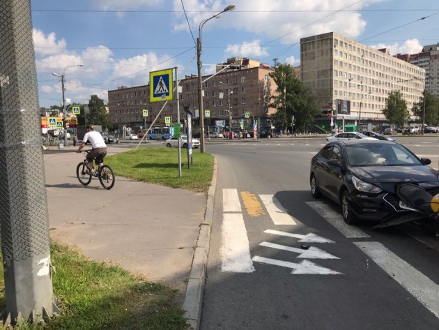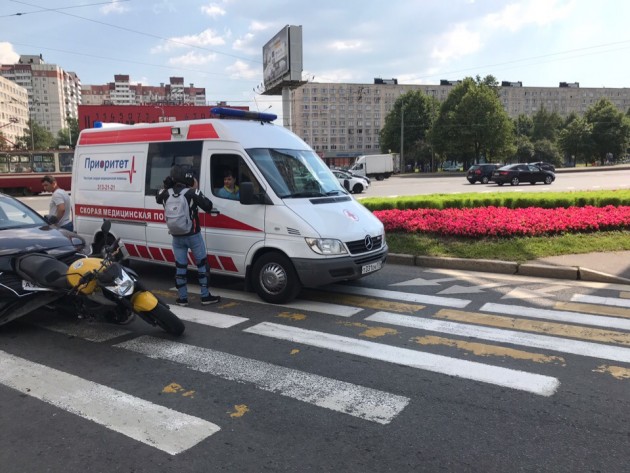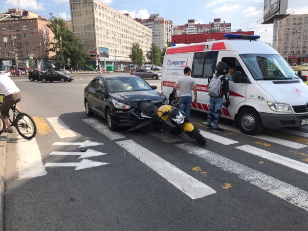 Дтп с мото на Народной ул., д. 3, съезд с Народной ул. к Октябрьской наб. Мото Yamaha, авто Solaris. Мотоциклист здоров, ходит.