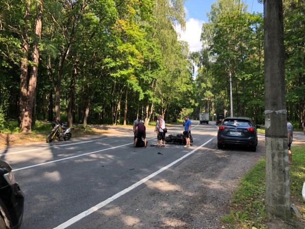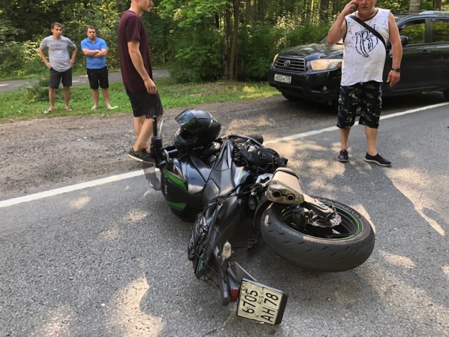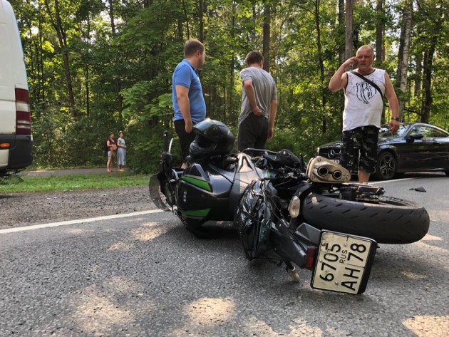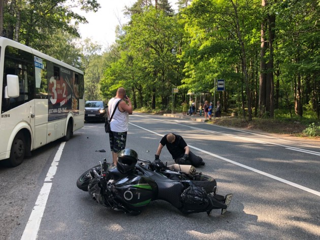 Дтп с мото на Приморском ш./ул. Танкистов, Зеленогорск. Все живы. Мотоциклист Владимир (перелом ключицы), увезен в больницу. Мот 6705АН78.