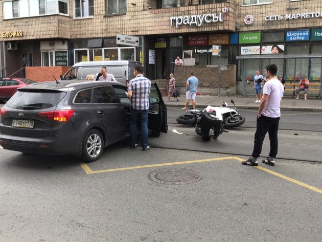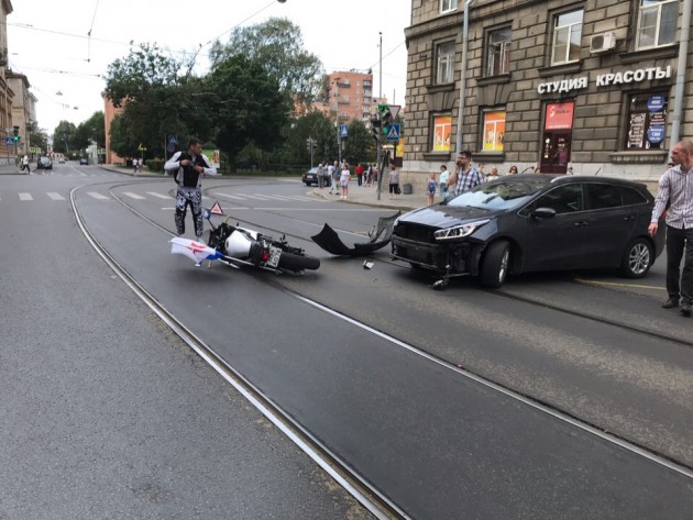 Дтп с мото на Среднем проспекте ВО/ Гаванской ул.. Без пострадавших.