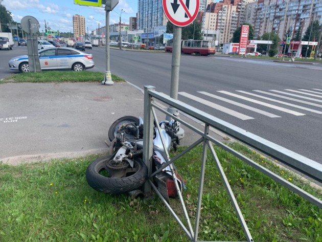 Дтп с мото на перекрестке Выборгского ш. и пр.Просвещения. Мотоциклистка Демина Алина Витальевна (перелом ключицы, ноги, под вопросом перелом таза, зчмт), увезена в больницу (ул. Вавиловых, 14). Мот Honda cb400 3791АН78. На месте жених. Со слов свидетелей, ее подрезали.