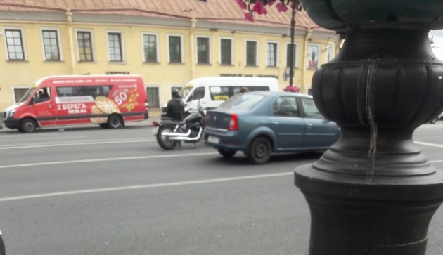 Дтп с мото на Невском пр., д.190. Лансер и мото, небольшие повреждения.