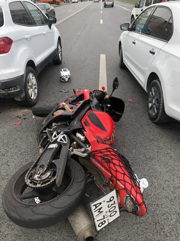 Дтп с мото на Кантемировской ул. на съезде с моста. Номер мото 9300АМ78.