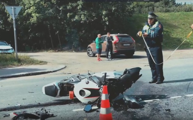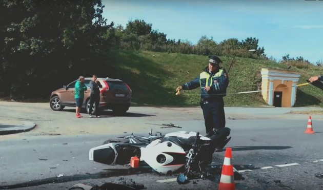 Примерно в 11:09. Мотоцикл и еще участники. Дтп с мото примерно в 11:00 в Выборге на Островной улице.