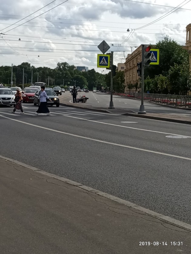 Дтп с мото примерно в 15:30 на пр. Стачек, д.5. Мотоциклист в порядке.