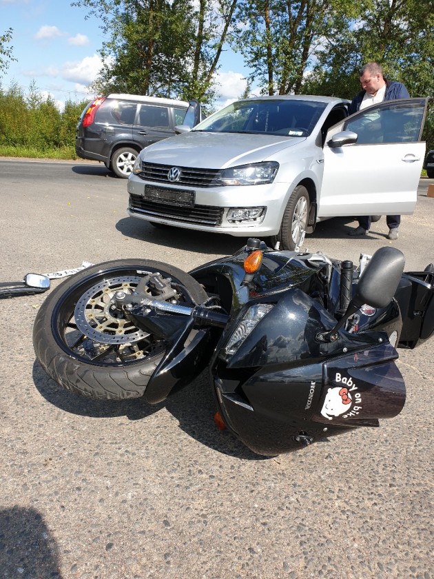 Дтп с мото примерно в 12:00 на перекрестке ул. Шинников и ш.Дорога Жизни, Всеволожск. Мотоциклистка жива, только ушибы.